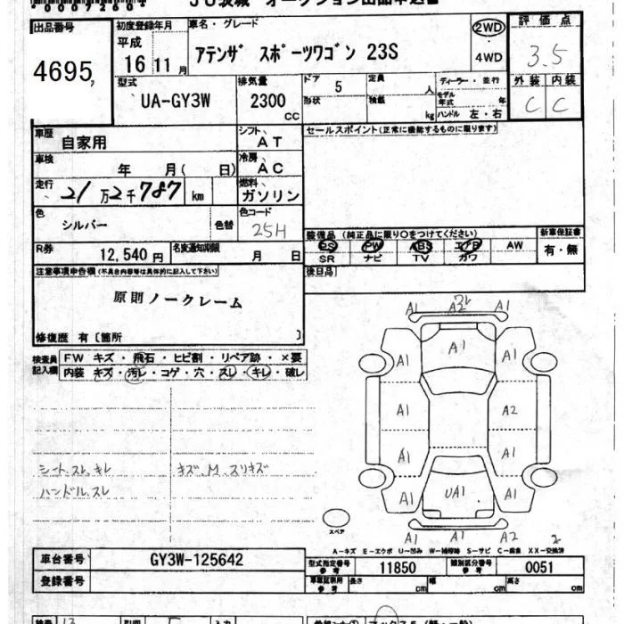 Mazda ATENZA WAGON с аукциона Японии JU Ibaraki лот № 4695