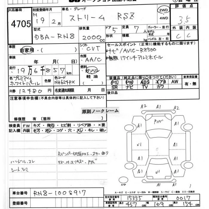 Honda STREAM с аукциона Японии JU Ibaraki лот № 4705