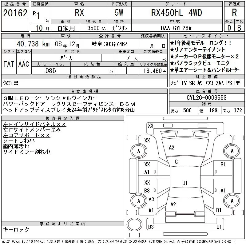 Lexus RX с аукциона Японии CAA Chubu лот № 20162