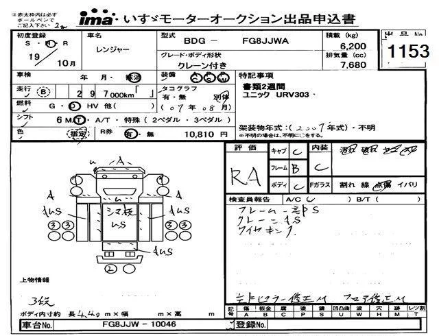 Hino RANGER с аукциона Японии Isuzu Tokyo лот № 1153