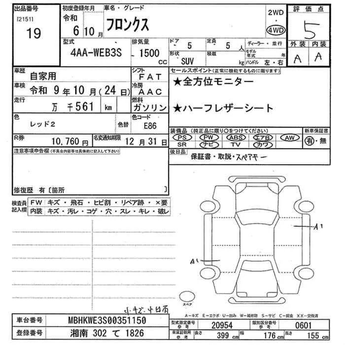 Suzuki FRONX с аукциона Японии JU Kanagawa лот № 19