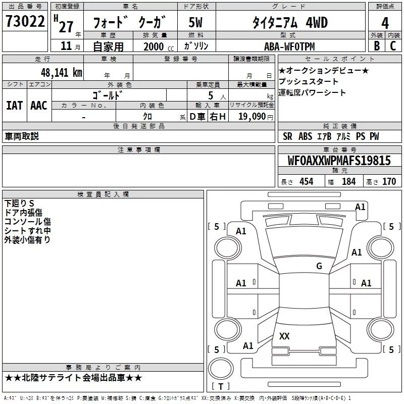 Ford KUGA с аукциона Японии TAA Chubu лот № 73022