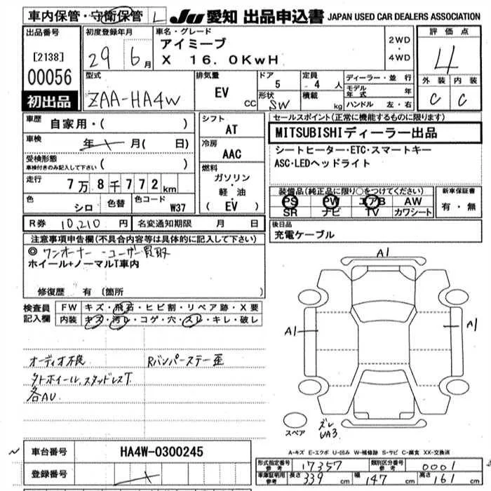 Mitsubishi I-MIEV с аукциона Японии JU Aichi лот № 56