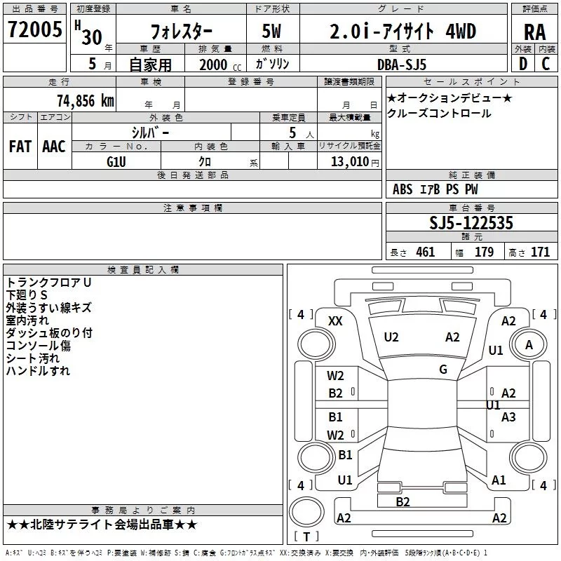 Subaru FORESTER с аукциона Японии TAA Chubu лот № 72005