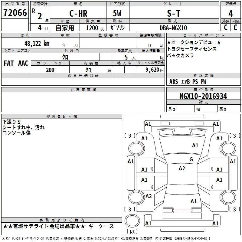 Toyota C-HR с аукциона Японии TAA Tohoku лот № 72066