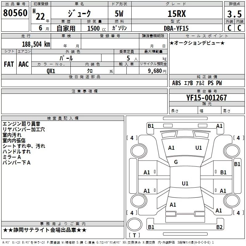 Nissan JUKE с аукциона Японии TAA Chubu лот № 80560