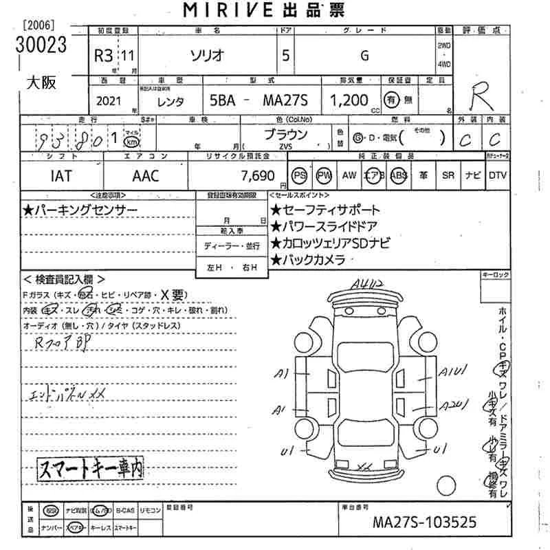 Suzuki SOLIO с аукциона Японии MIRIVE Osaka лот № 30023