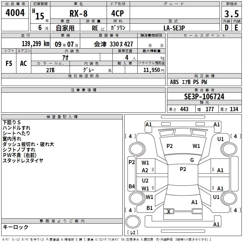 Mazda RX-8 с аукциона Японии TAA Tohoku лот № 4004