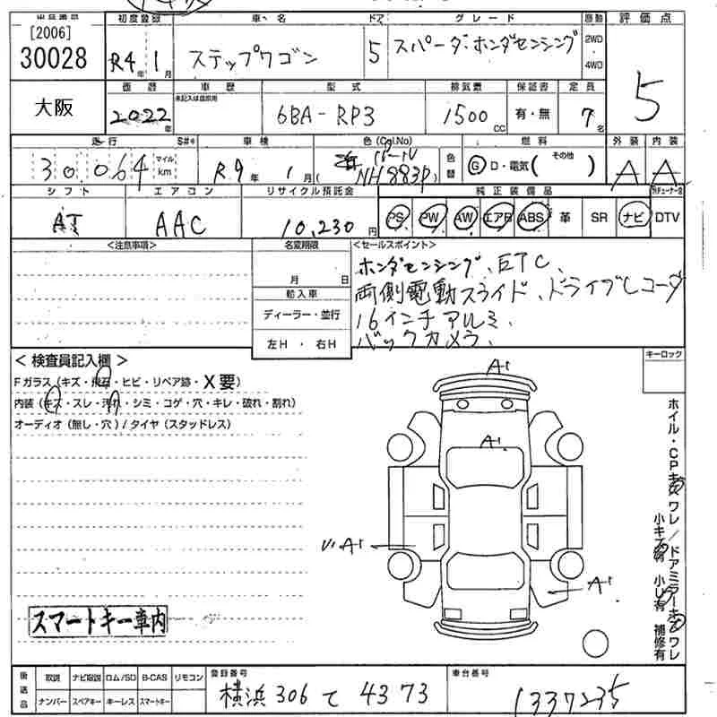 Honda STEP WAGON с аукциона Японии MIRIVE Osaka лот № 30028