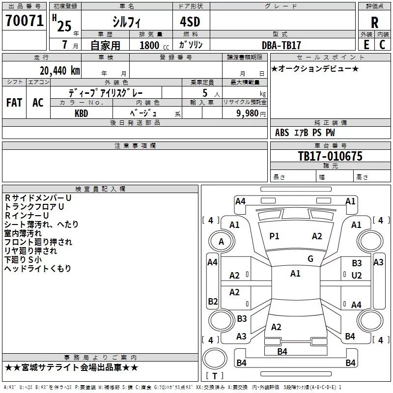 Nissan SYLPHY с аукциона Японии TAA Tohoku лот № 70071