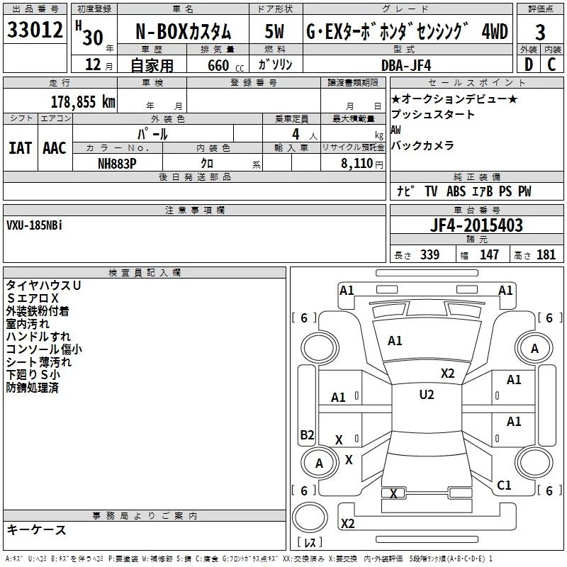 Honda N BOX с аукциона Японии TAA Tohoku лот № 33012