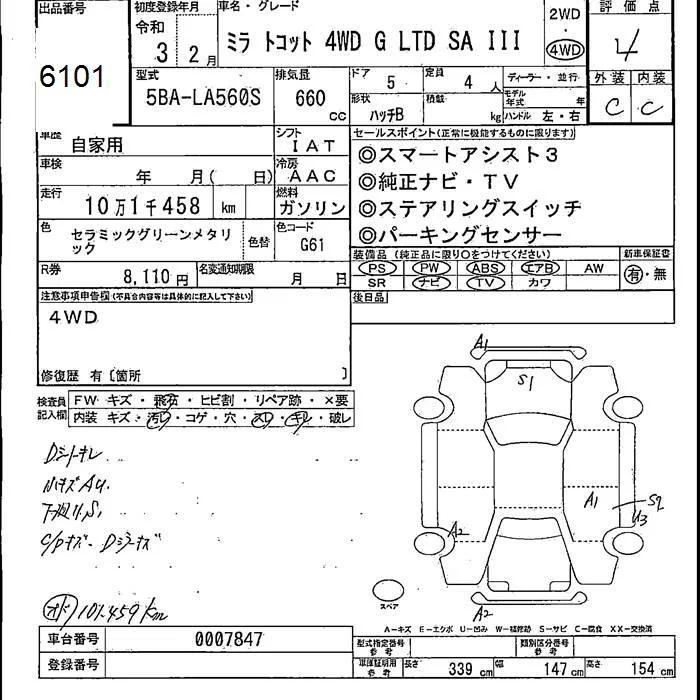 Daihatsu MIRA TOCOT с аукциона Японии JU Fukushima лот № 6101