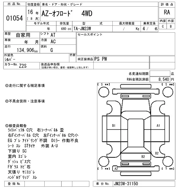Mazda AZ-OFFROAD с аукциона Японии ARAI Oyama лот № 1054