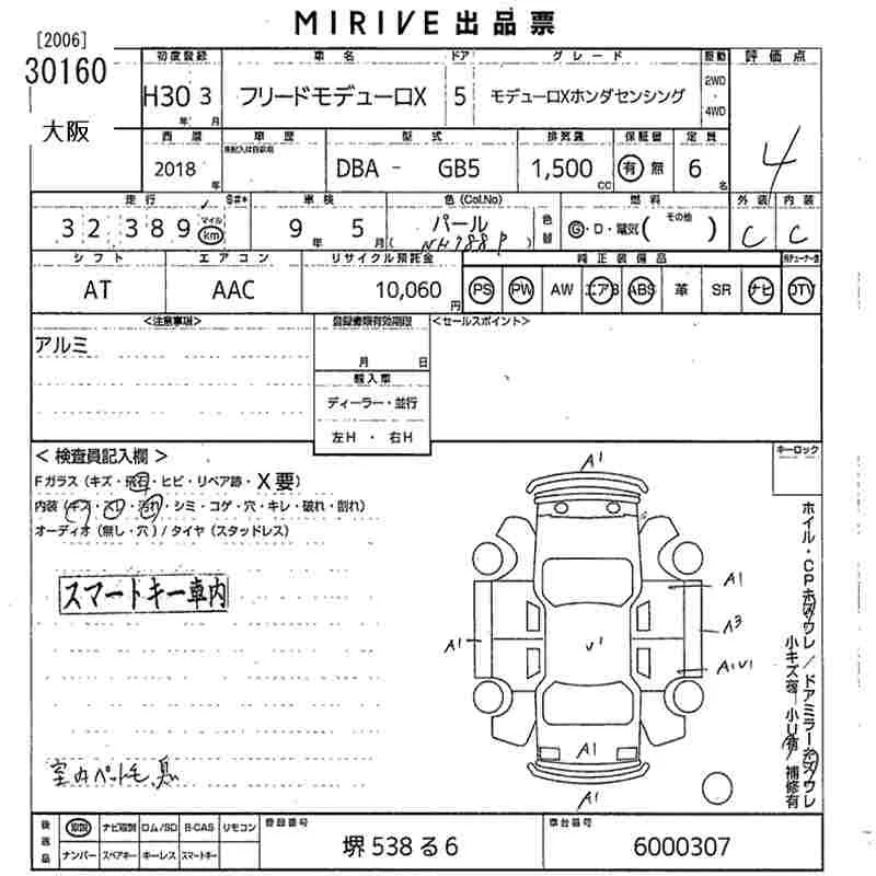 Honda FREED с аукциона Японии MIRIVE Osaka лот № 30160