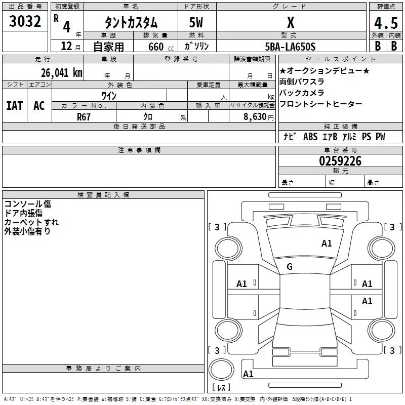 Daihatsu TANTO с аукциона Японии TAA Chubu лот № 3032