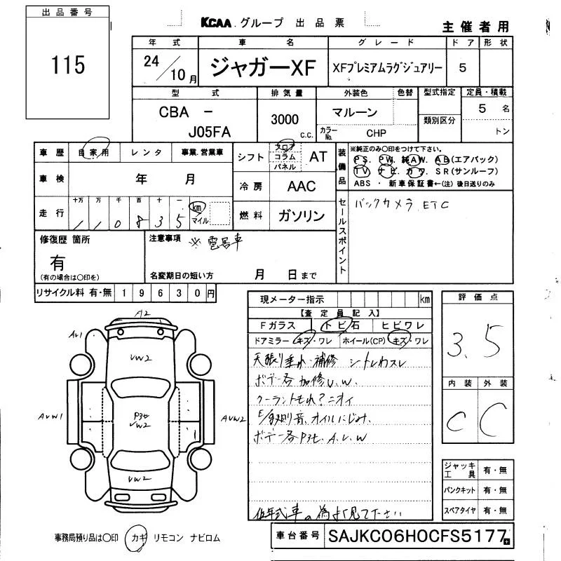 Jaguar XF SERIES с аукциона Японии KCAA Fukuoka лот № 115
