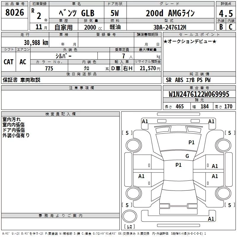 Mercedes-Benz GLB с аукциона Японии TAA Chubu лот № 8026