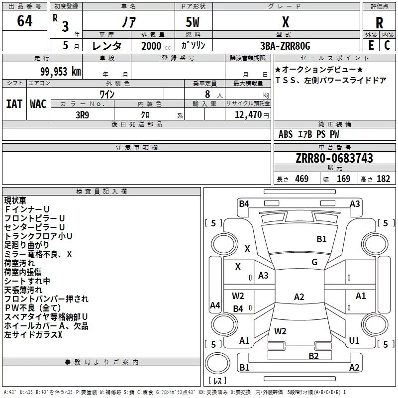 Toyota NOAH с аукциона Японии TAA Kanto лот № 64