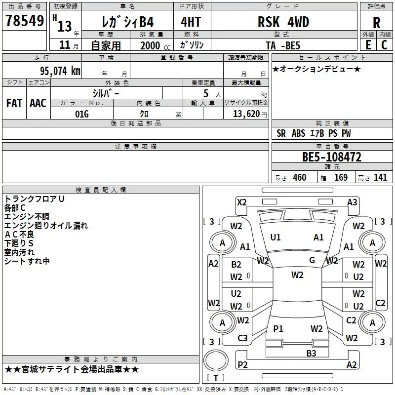 Subaru LEGACY B4 с аукциона Японии TAA Tohoku лот № 78549