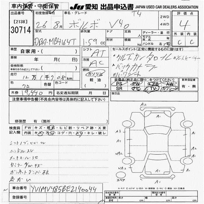 Volvo V40 с аукциона Японии JU Aichi лот № 30714