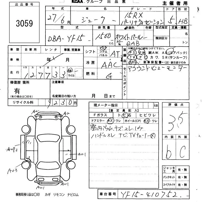 Nissan JUKE с аукциона Японии KCAA Fukuoka лот № 3059
