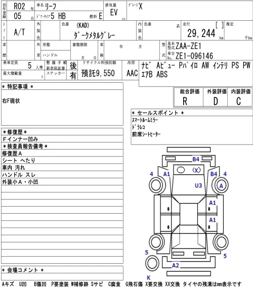 Nissan LEAF с аукциона Японии NAA Tokyo лот № 8007