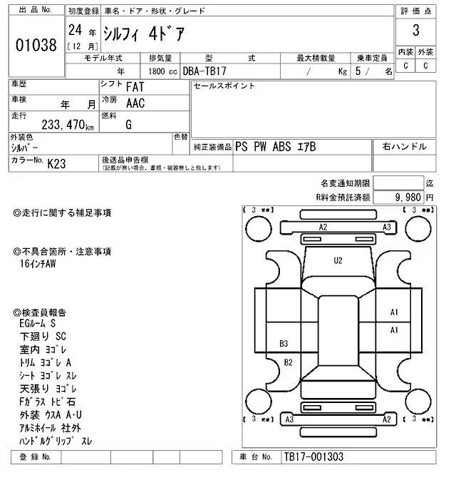 Nissan SYLPHY с аукциона Японии ARAI Sendai лот № 1038