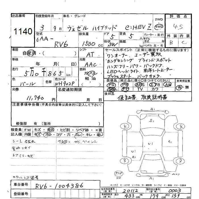 Honda VEZEL с аукциона Японии JU Hokkaido лот № 1140