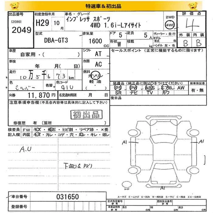 Subaru IMPREZA с аукциона Японии JU Miyagi лот № 2049