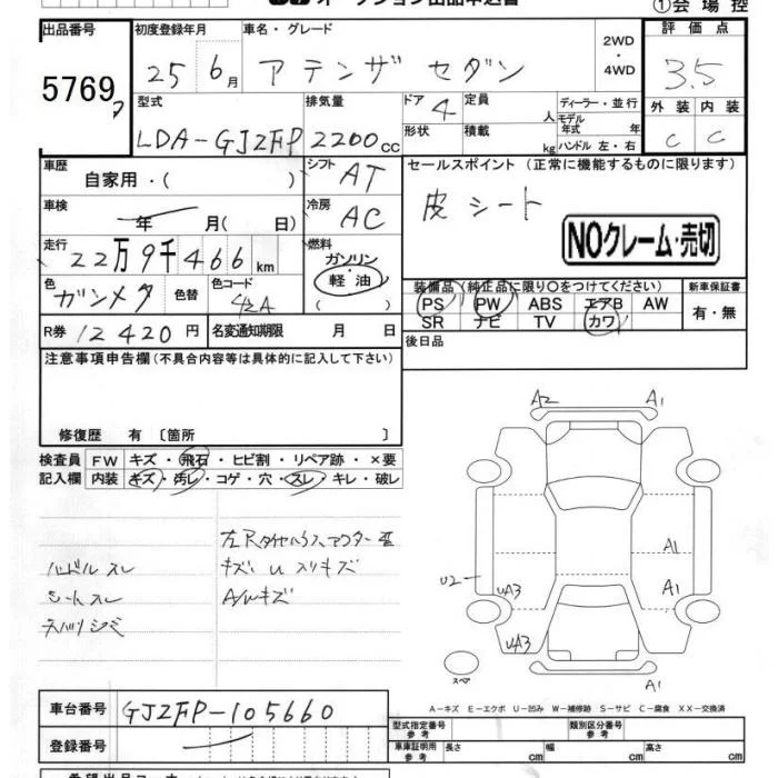 Mazda ATENZA SEDAN с аукциона Японии JU Chiba лот № 5769