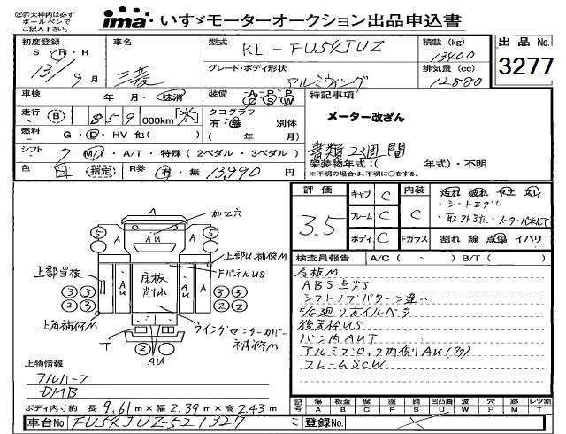 Mitsubishi FUSO TRUCK с аукциона Японии Isuzu Kobe лот № 3277
