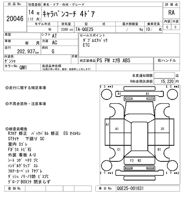 Nissan CARAVAN с аукциона Японии ARAI Oyama VT лот № 20046