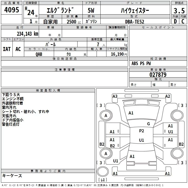 Nissan ELGRAND с аукциона Японии TAA Yokohama лот № 4095