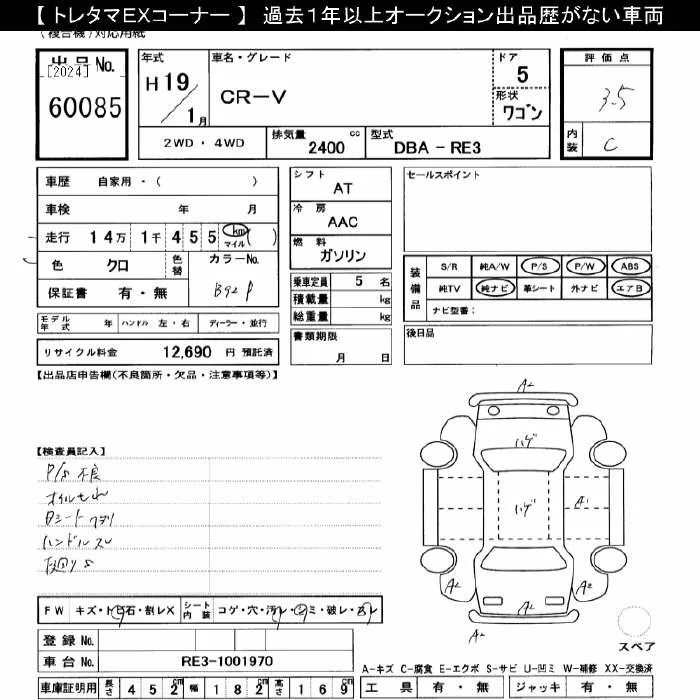 Honda CR-V с аукциона Японии JU Gifu лот № 60085