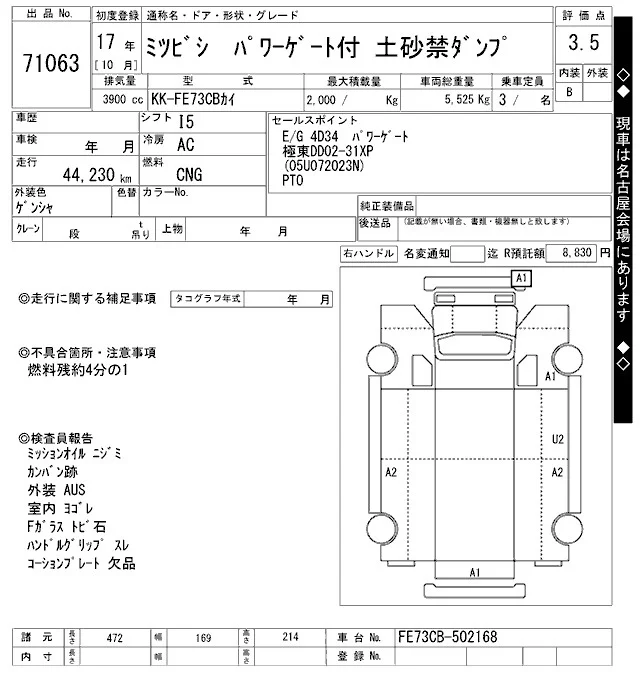 Mitsubishi FUSO TRUCK с аукциона Японии ARAI Oyama VT лот № 71063