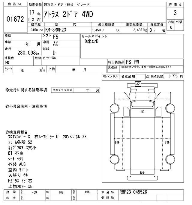 Nissan ATLAS с аукциона Японии ARAI Oyama VT лот № 1672