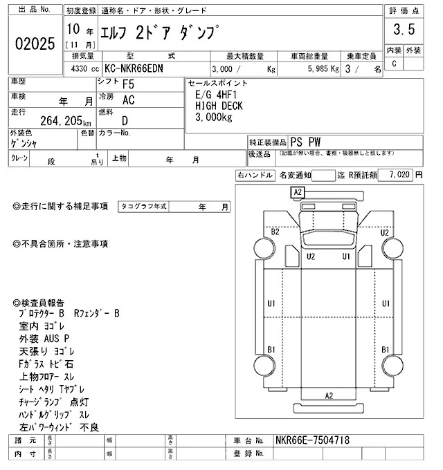 Isuzu ELF с аукциона Японии ARAI Oyama VT лот № 2025