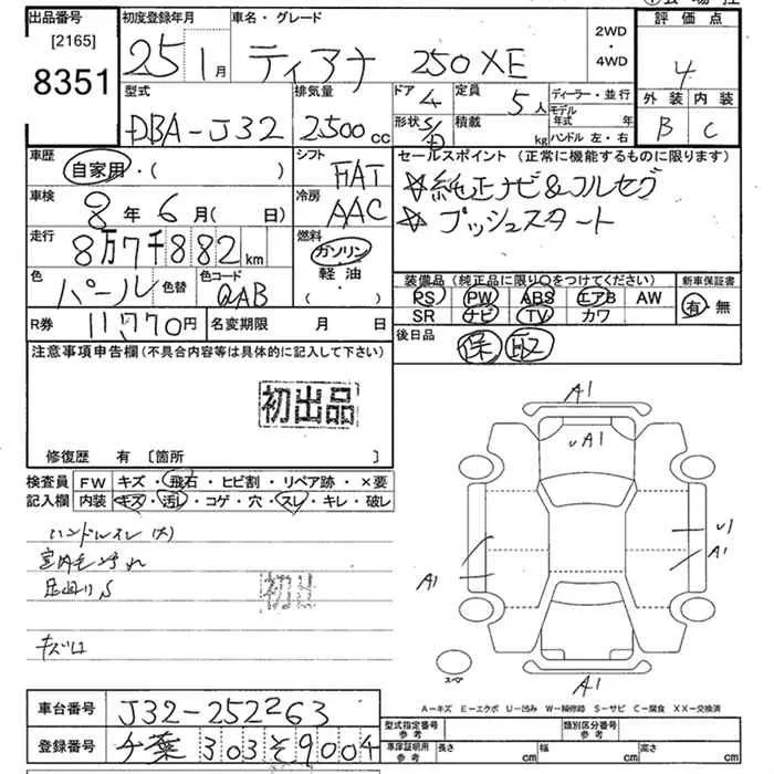 Nissan TEANA с аукциона Японии JU Tokyo лот № 8351