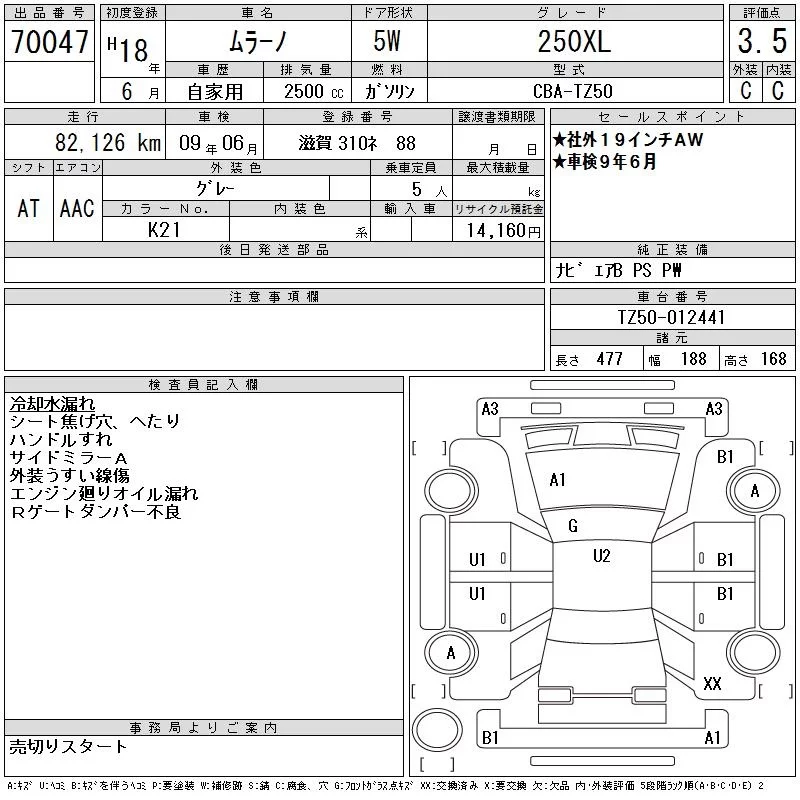 Nissan MURANO с аукциона Японии CAA Gifu лот № 70047