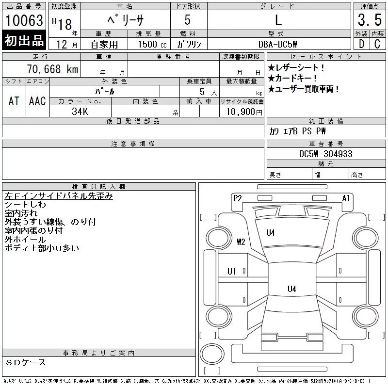 Mazda VERISA с аукциона Японии CAA Tokyo лот № 10063