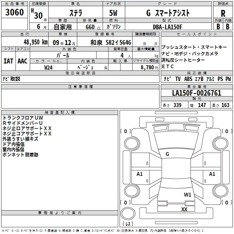 Subaru STELLA с аукциона Японии TAA Kinki лот № 3060