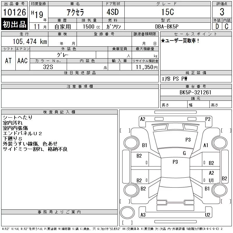 Mazda AXELA с аукциона Японии CAA Tokyo лот № 10126