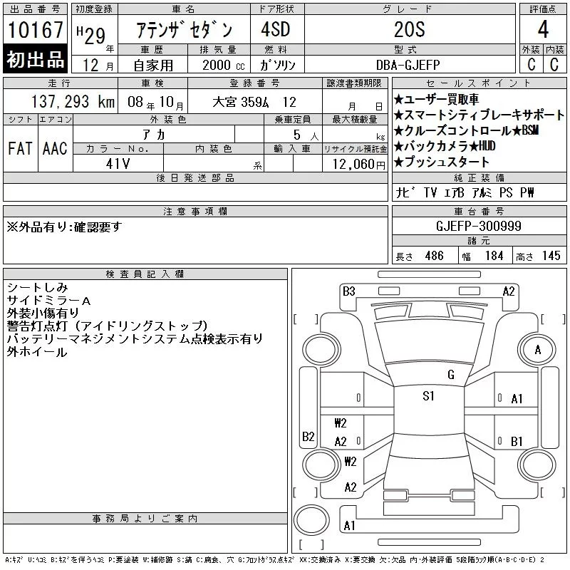 Mazda ATENZA SEDAN с аукциона Японии CAA Tokyo лот № 10167
