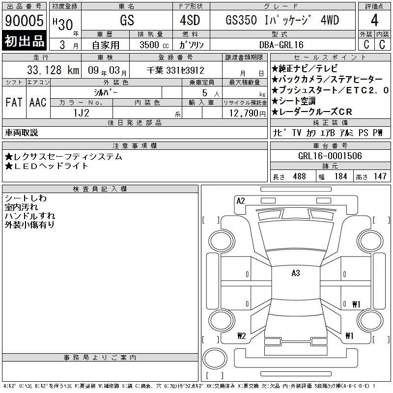 Lexus GS с аукциона Японии CAA Tokyo лот № 90005