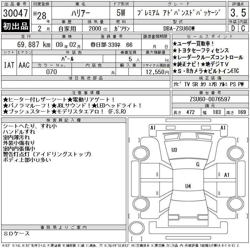 Toyota HARRIER с аукциона Японии CAA Tokyo лот № 30047