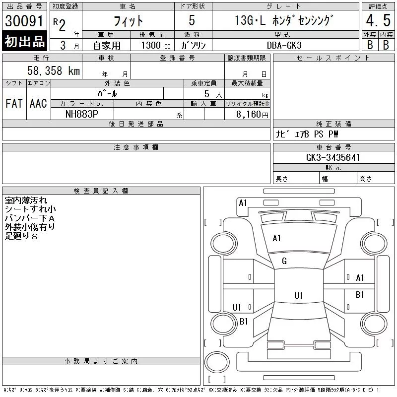 Honda FIT с аукциона Японии CAA Gifu лот № 30091
