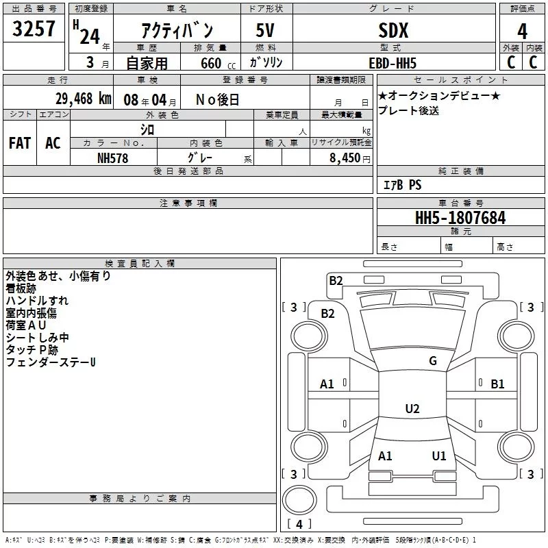 Honda ACTY VAN с аукциона Японии TAA Kinki лот № 3257