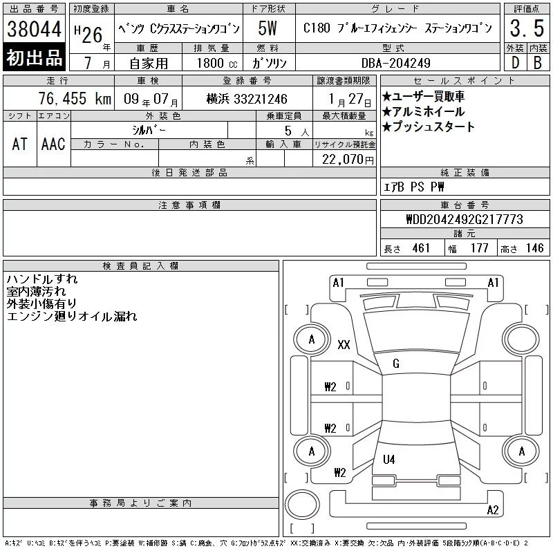 Mercedes-Benz C CLASS WAGON с аукциона Японии CAA Tokyo лот № 38044