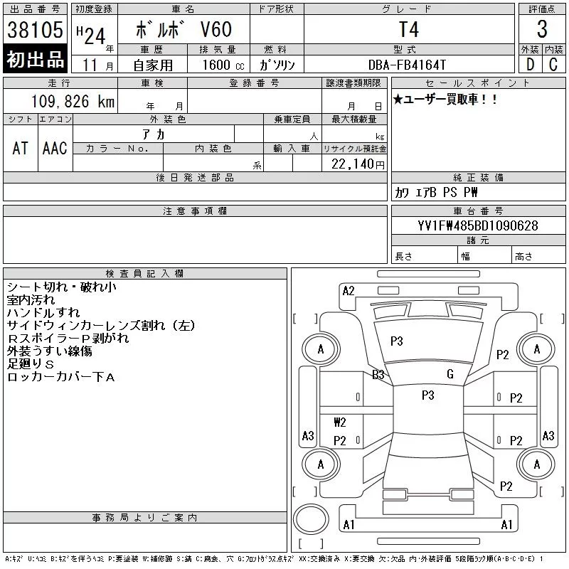 Volvo V60 с аукциона Японии CAA Tokyo лот № 38105
