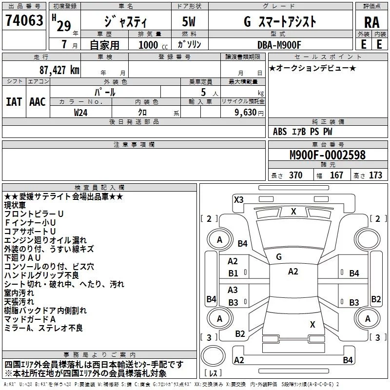 Subaru JUSTY с аукциона Японии TAA Shikoku лот № 74063